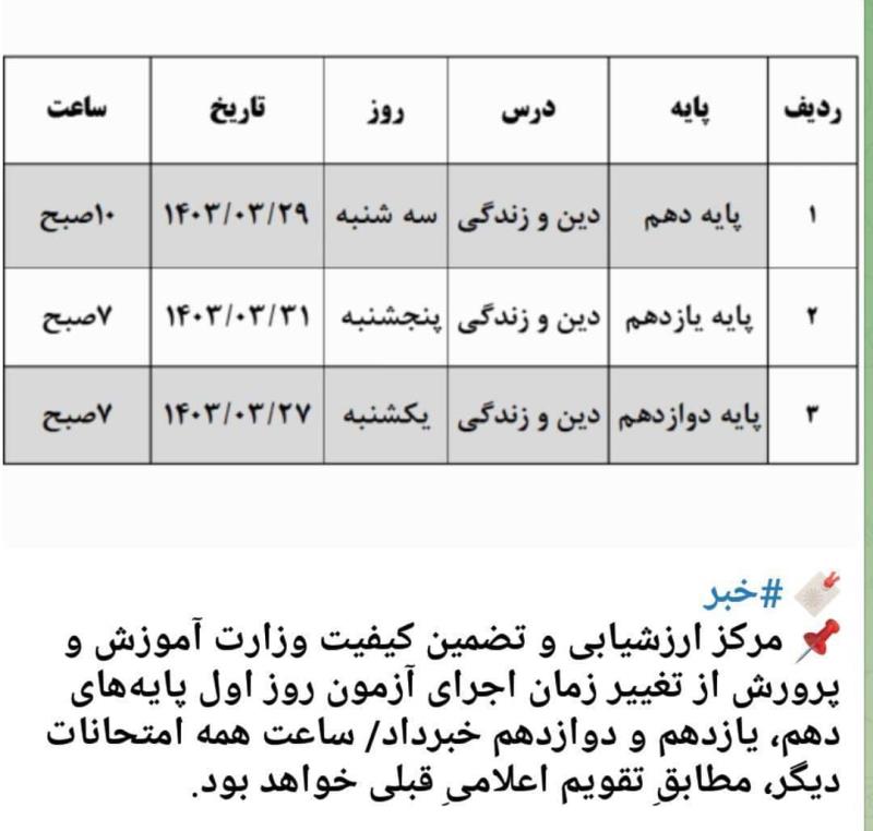 برگزاری آزمون های شبه نهایی پایه دوازدهم