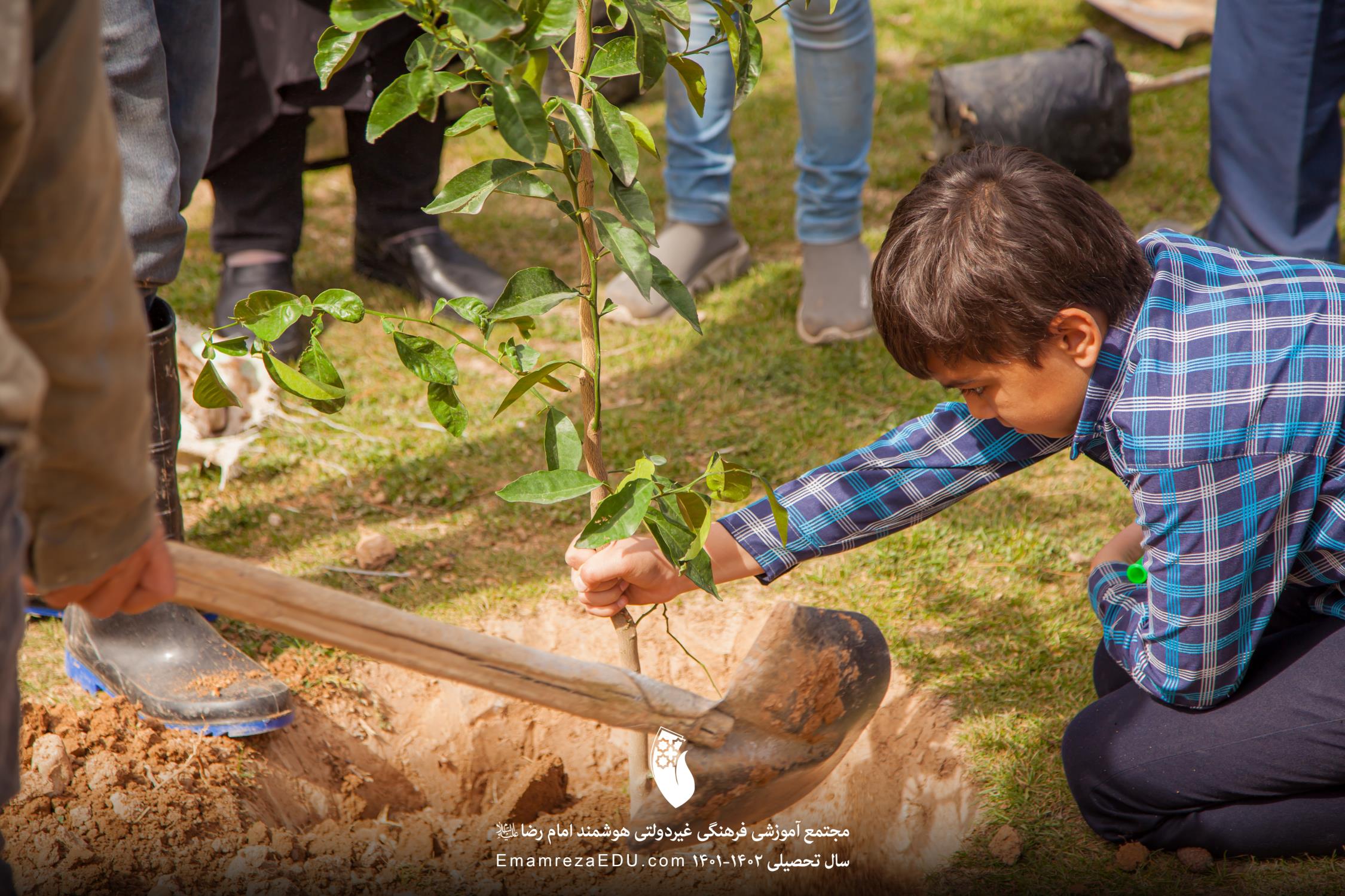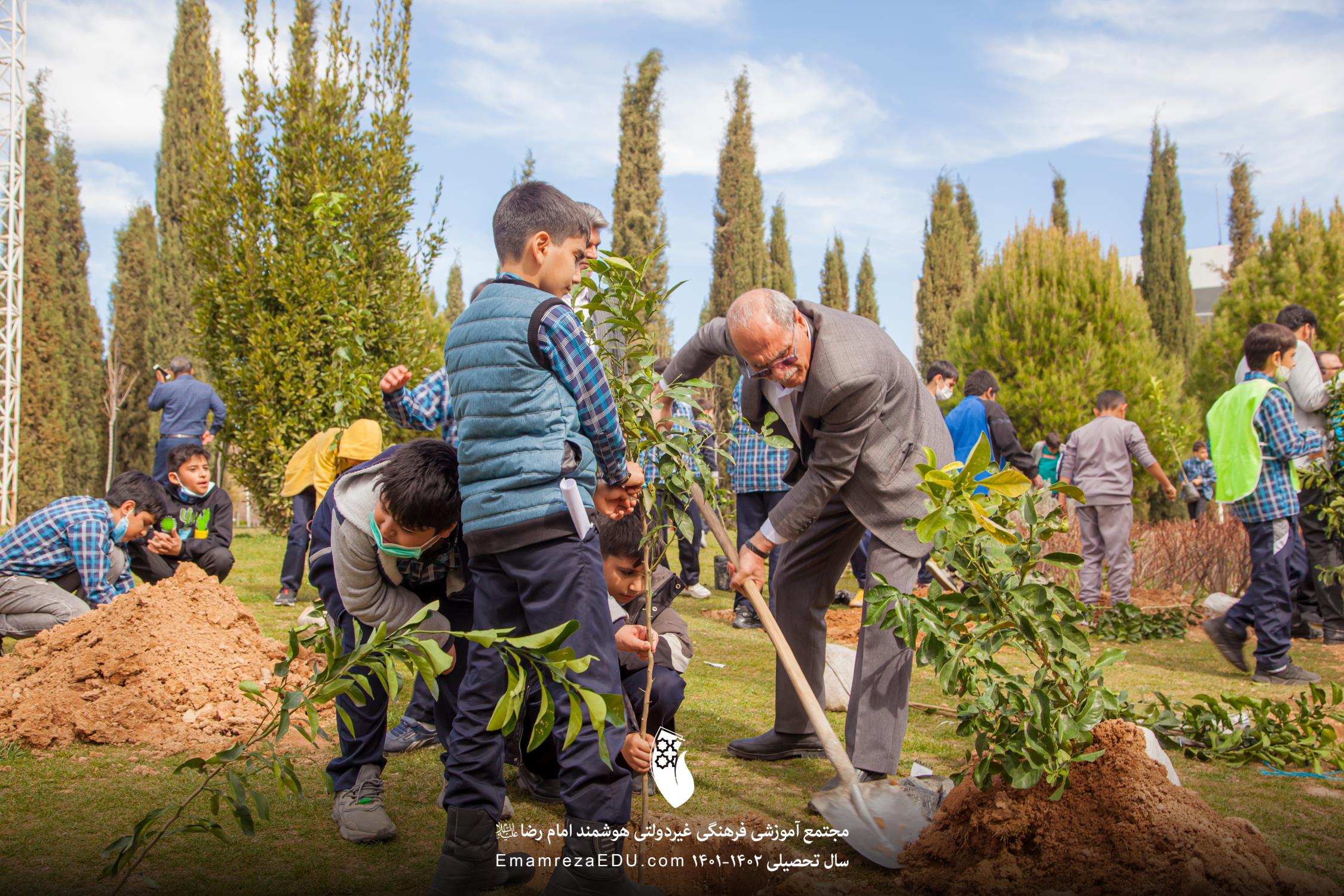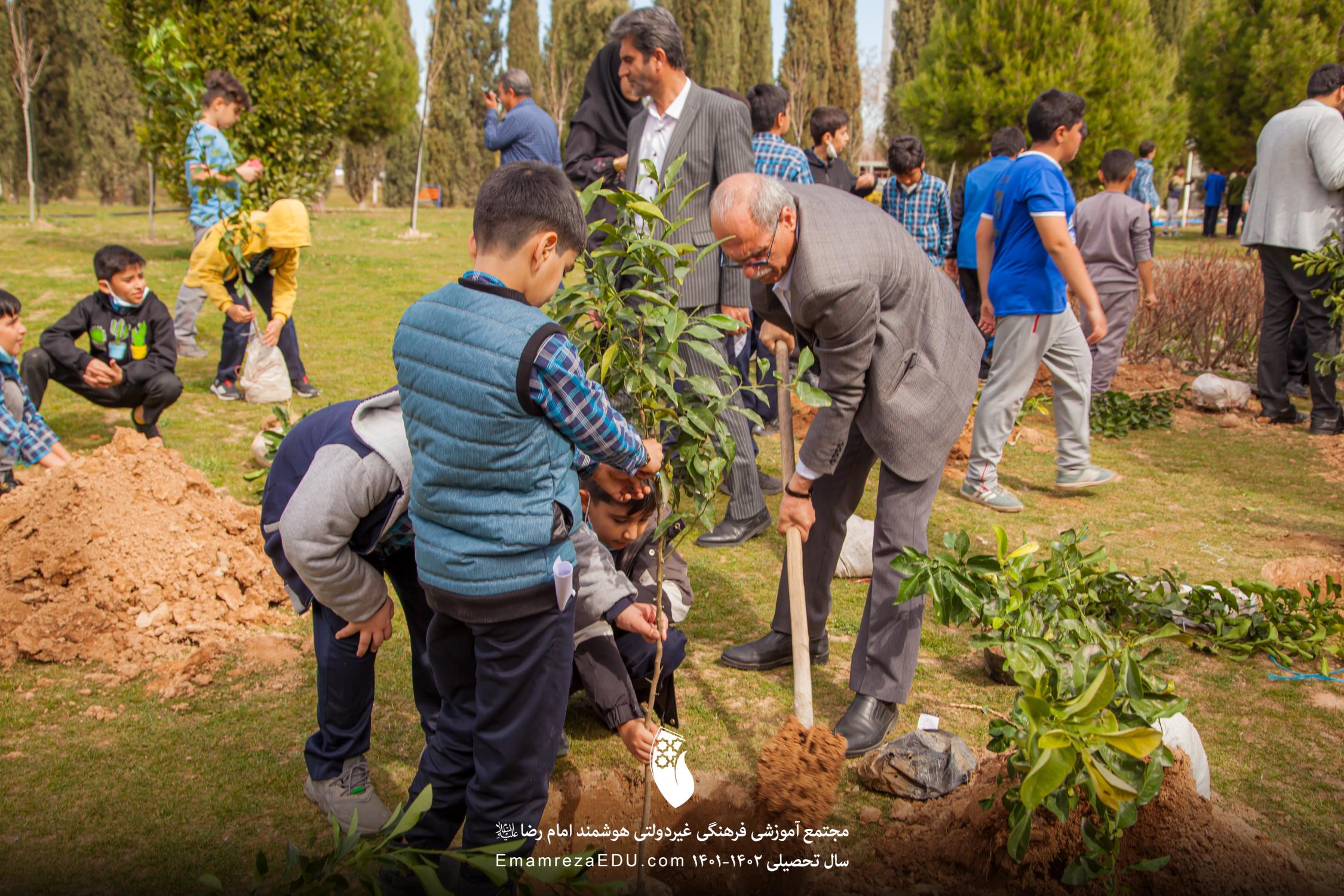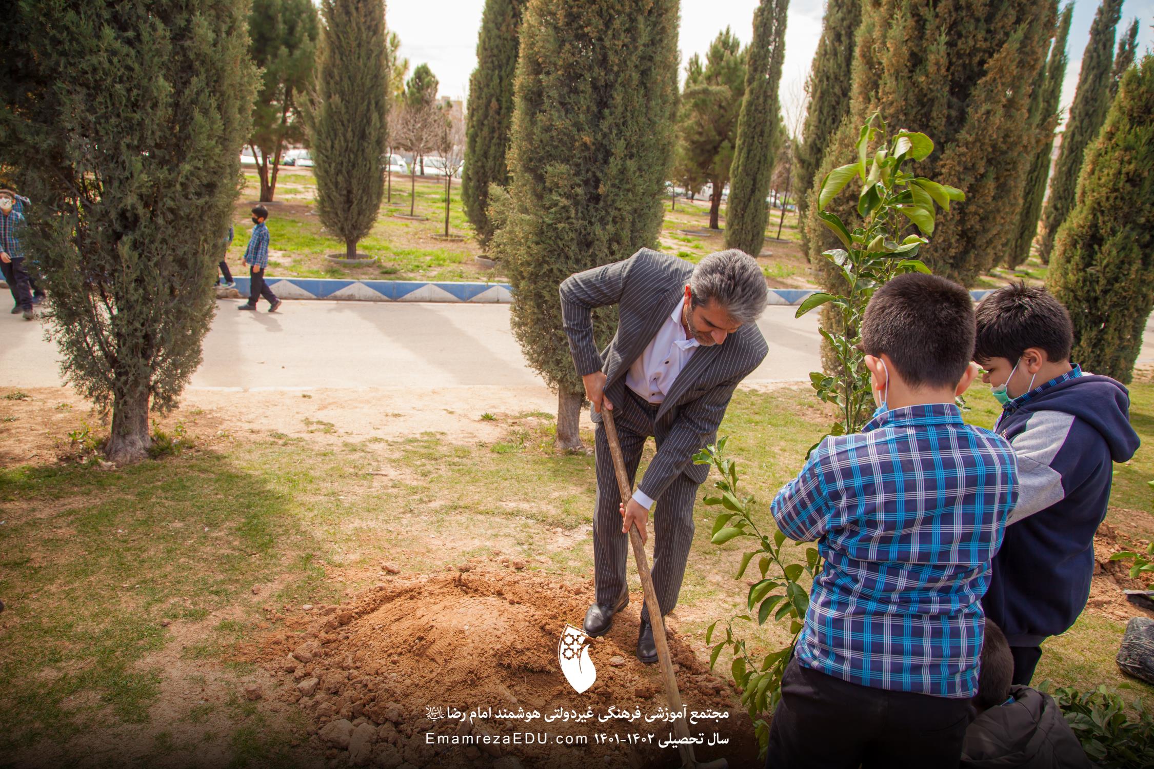 کاشت نهال توسط موسس مجتمع، مدیران و دانش آموزان به مناسبت روز درختکاری