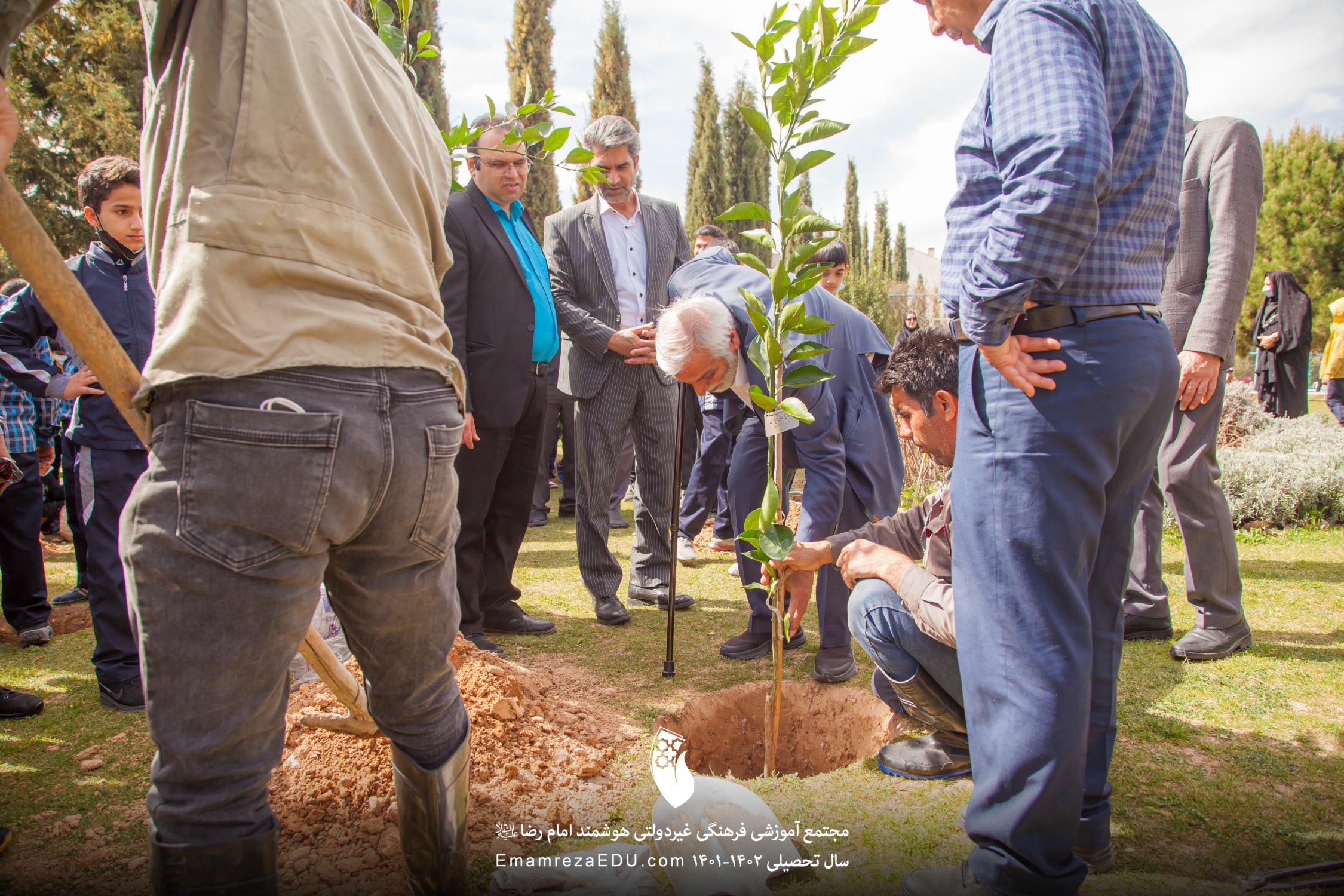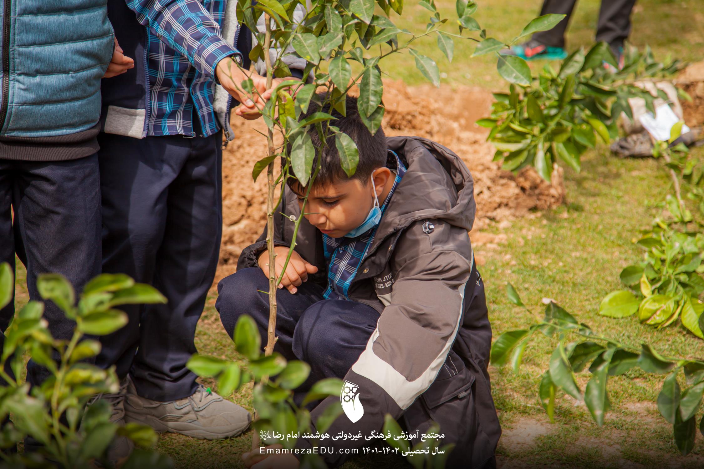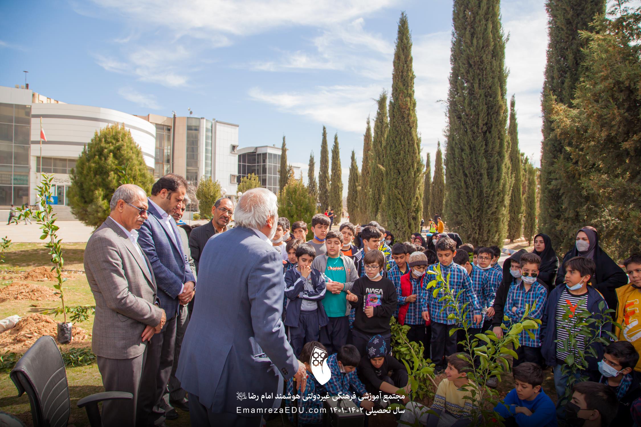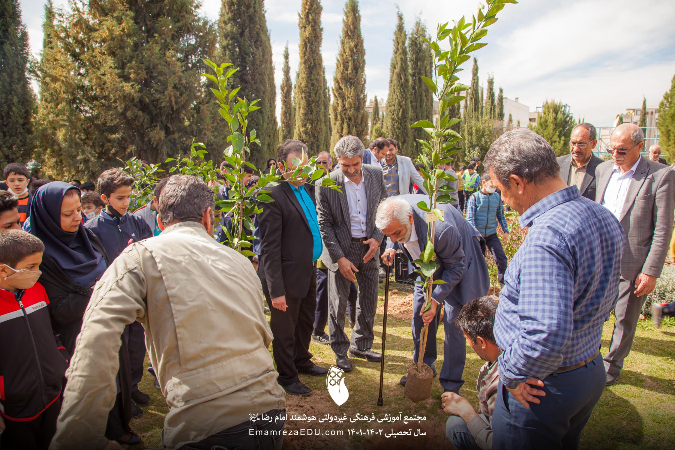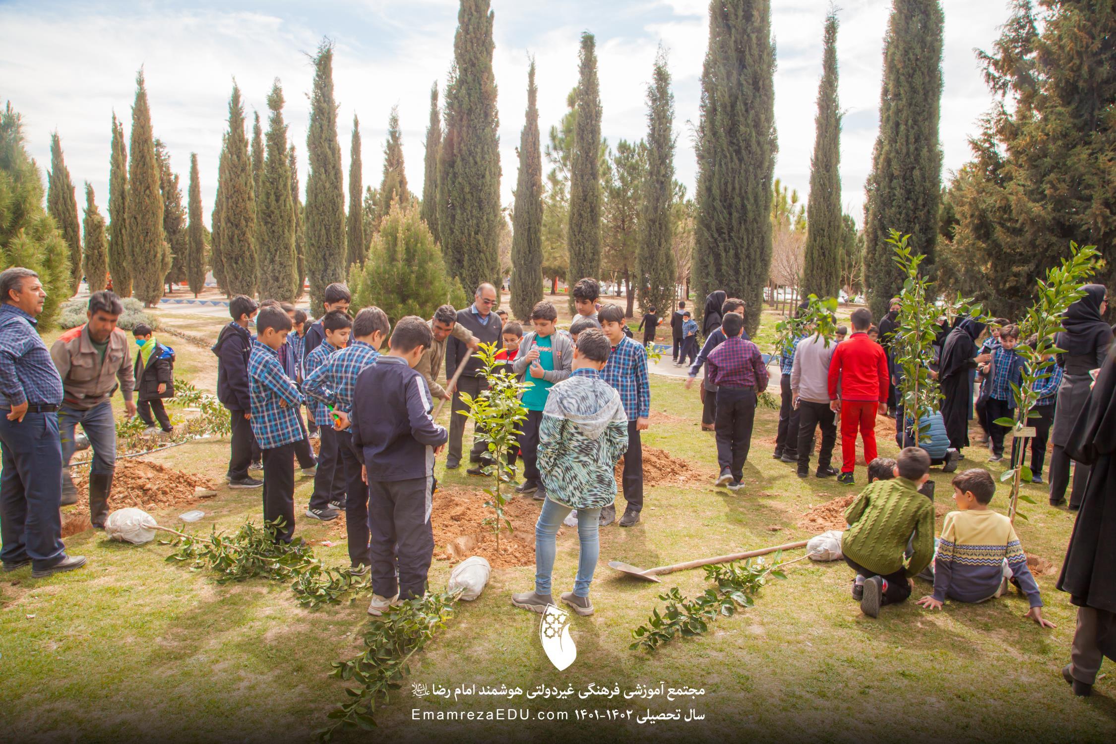 کاشت نهال توسط موسس مجتمع، مدیران و دانش آموزان به مناسبت روز درختکاری